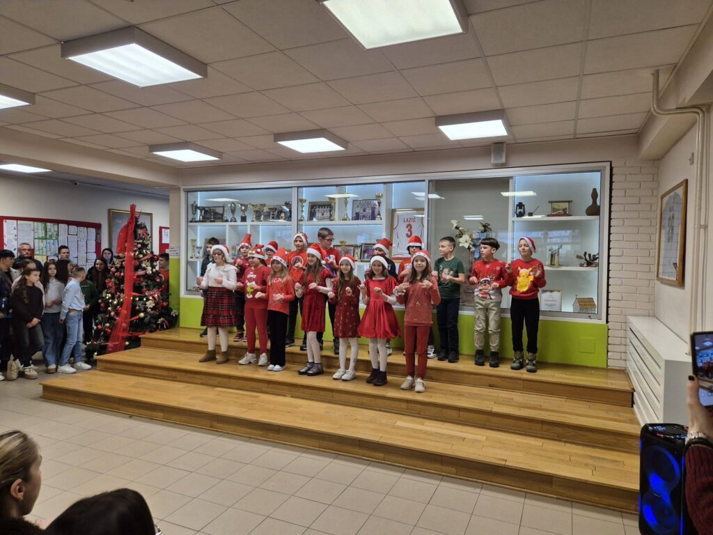 Данас је у нашој школи одржана новогодишња приредба ученика млађих разреда, испуњена радошћу, осмесима и правим празничним духом.