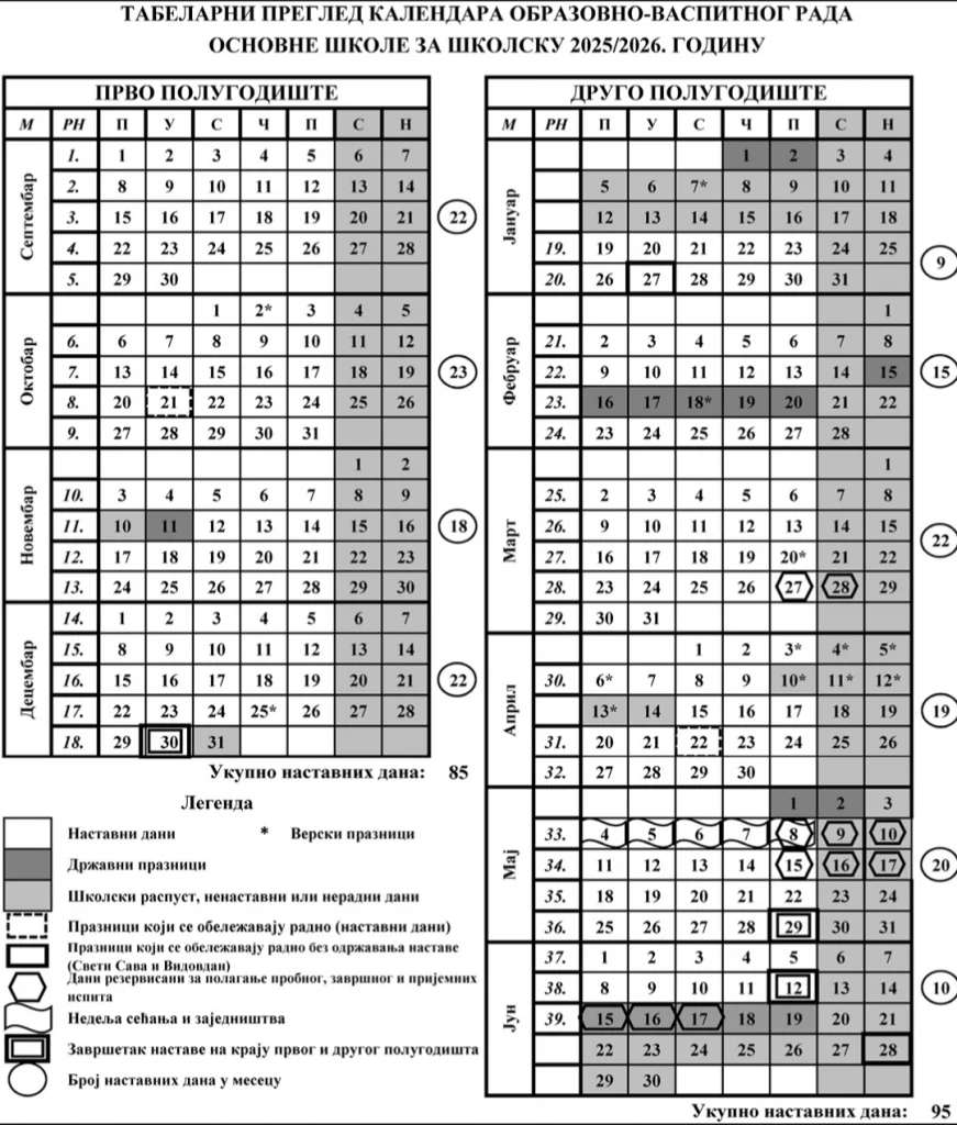 КАЛЕНДАР РАДА
